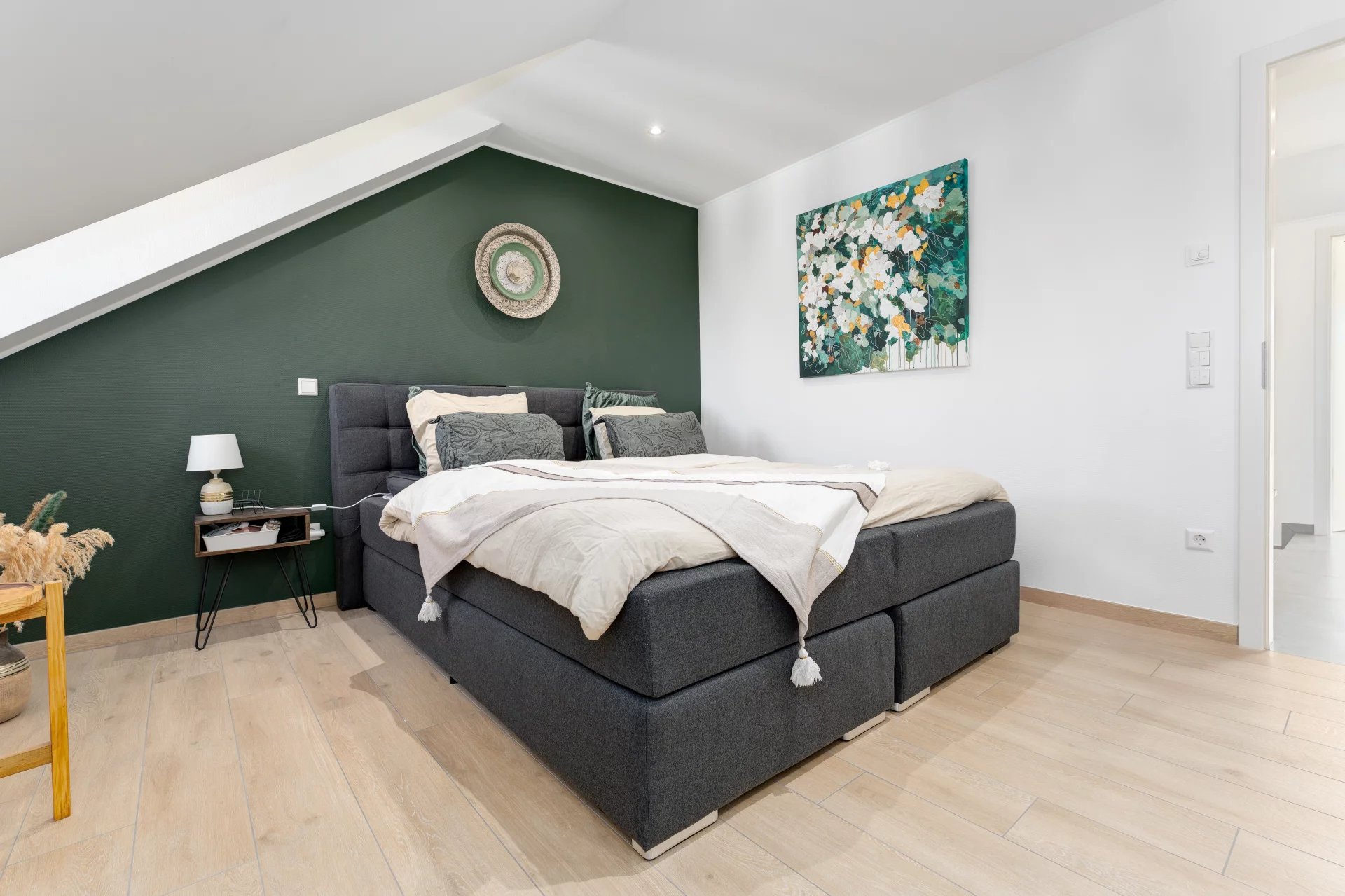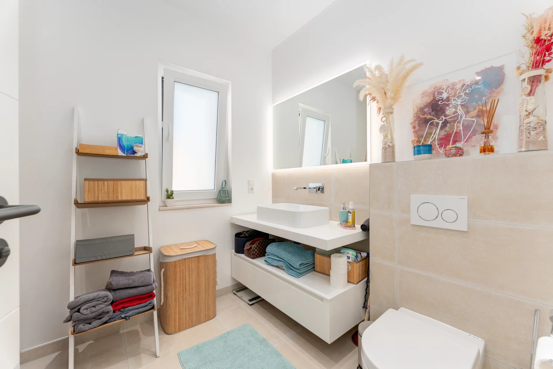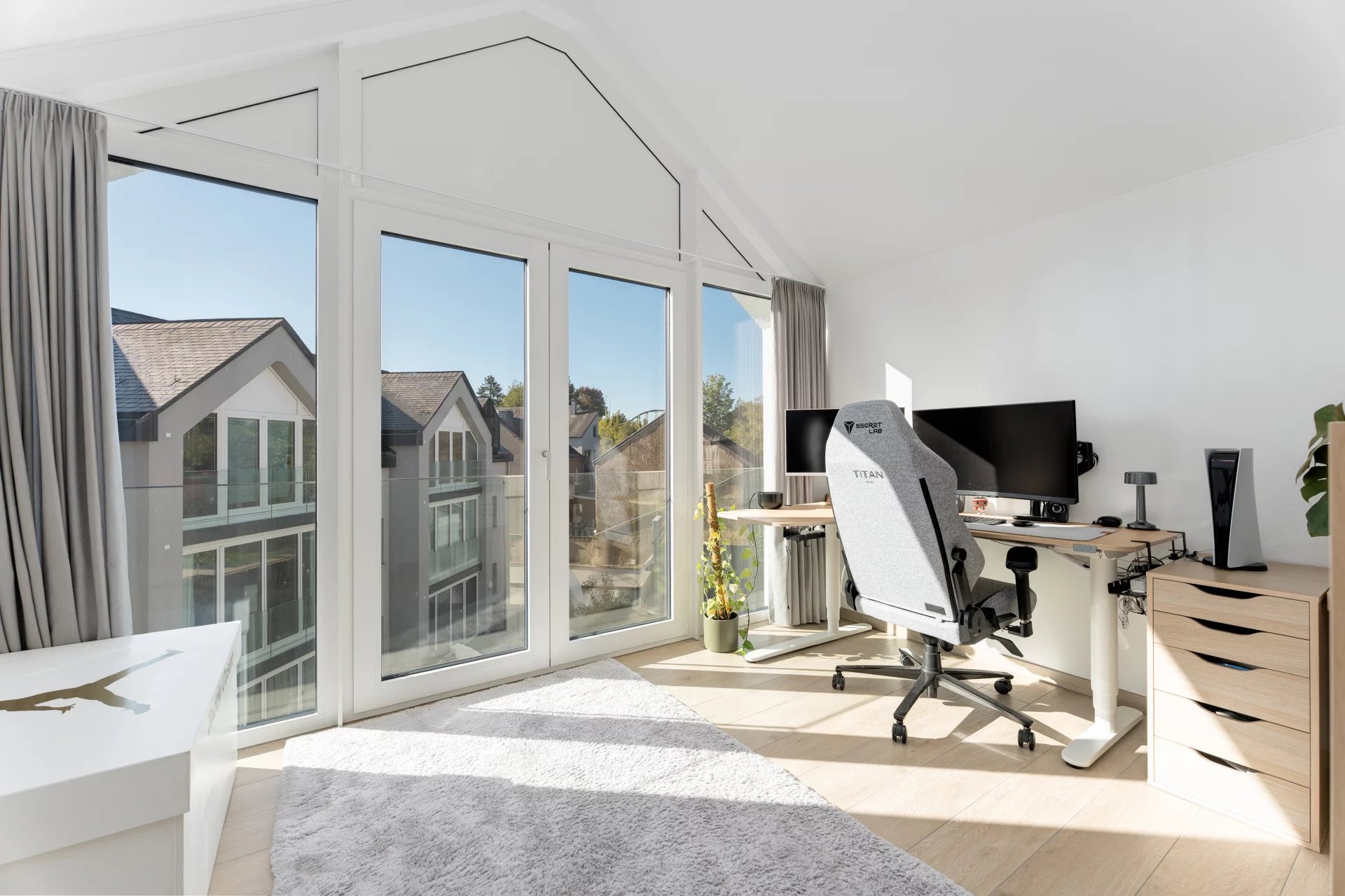 Located on the 1st floor of a modern residence in Oetrange (municipality of Contern), it stands out for its generous volumes, brightness, and high-quality finishes.