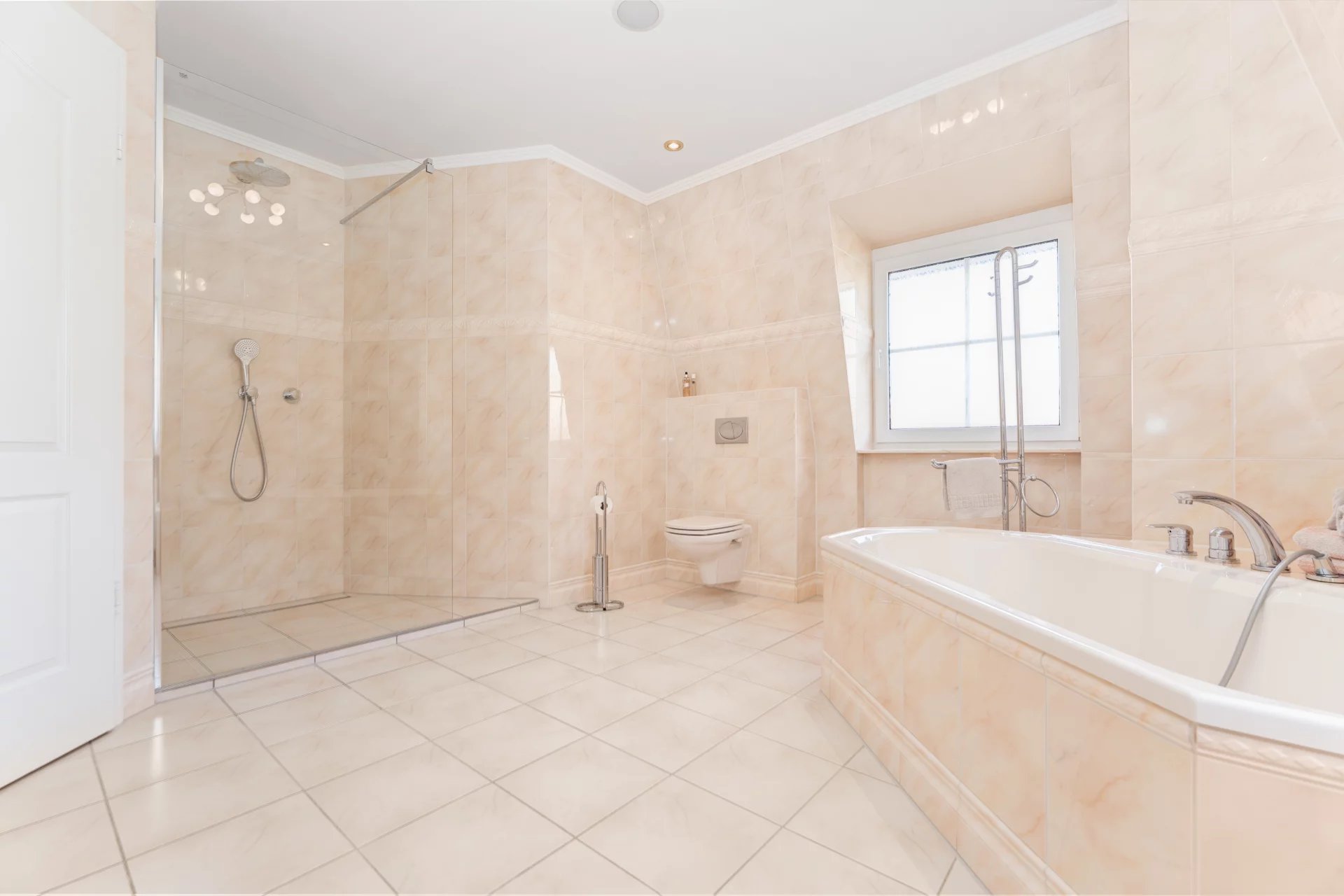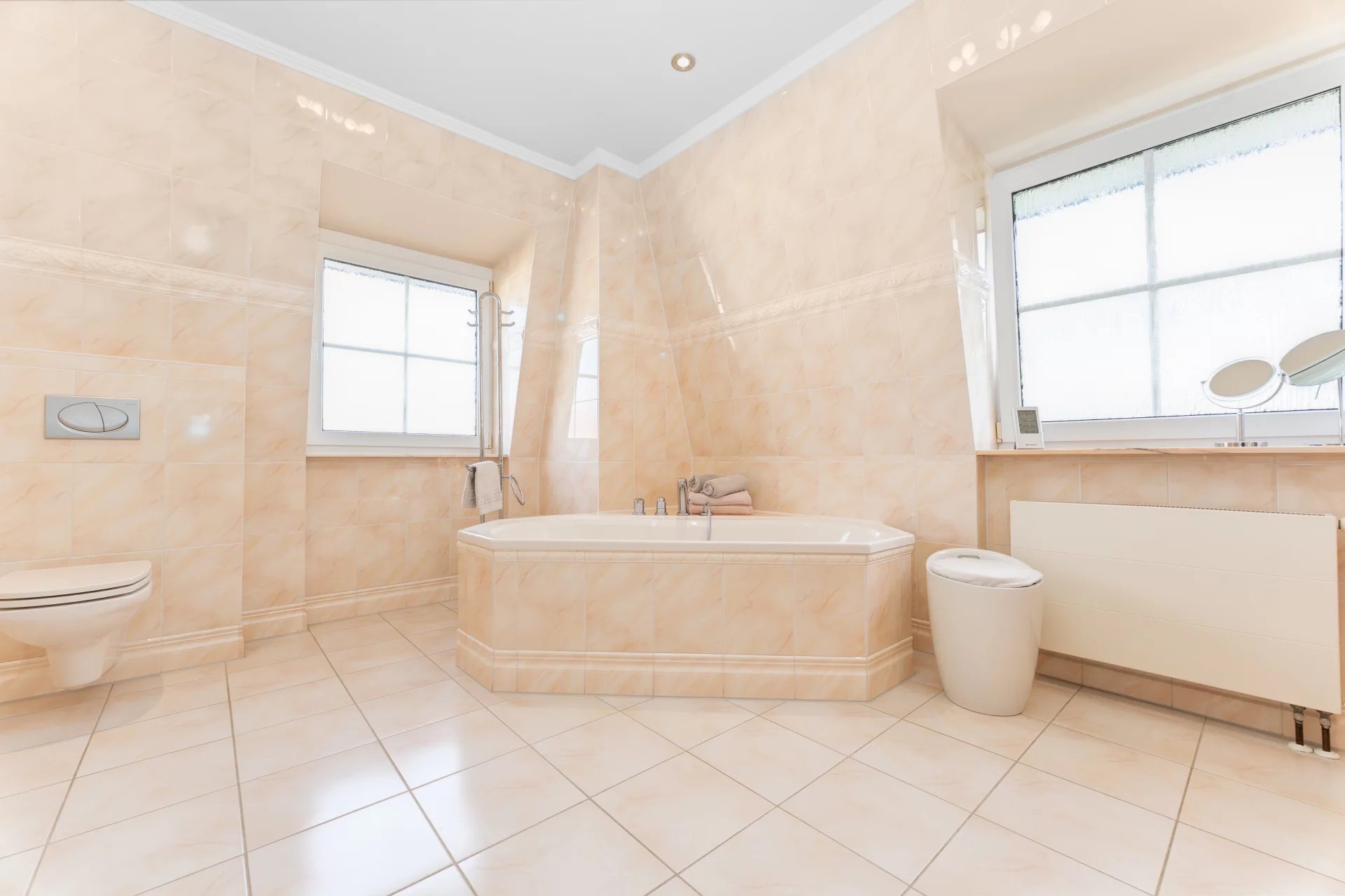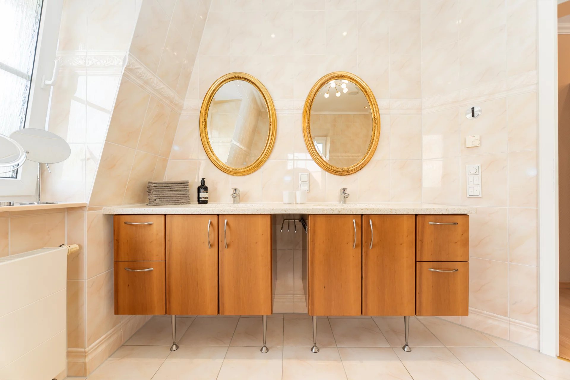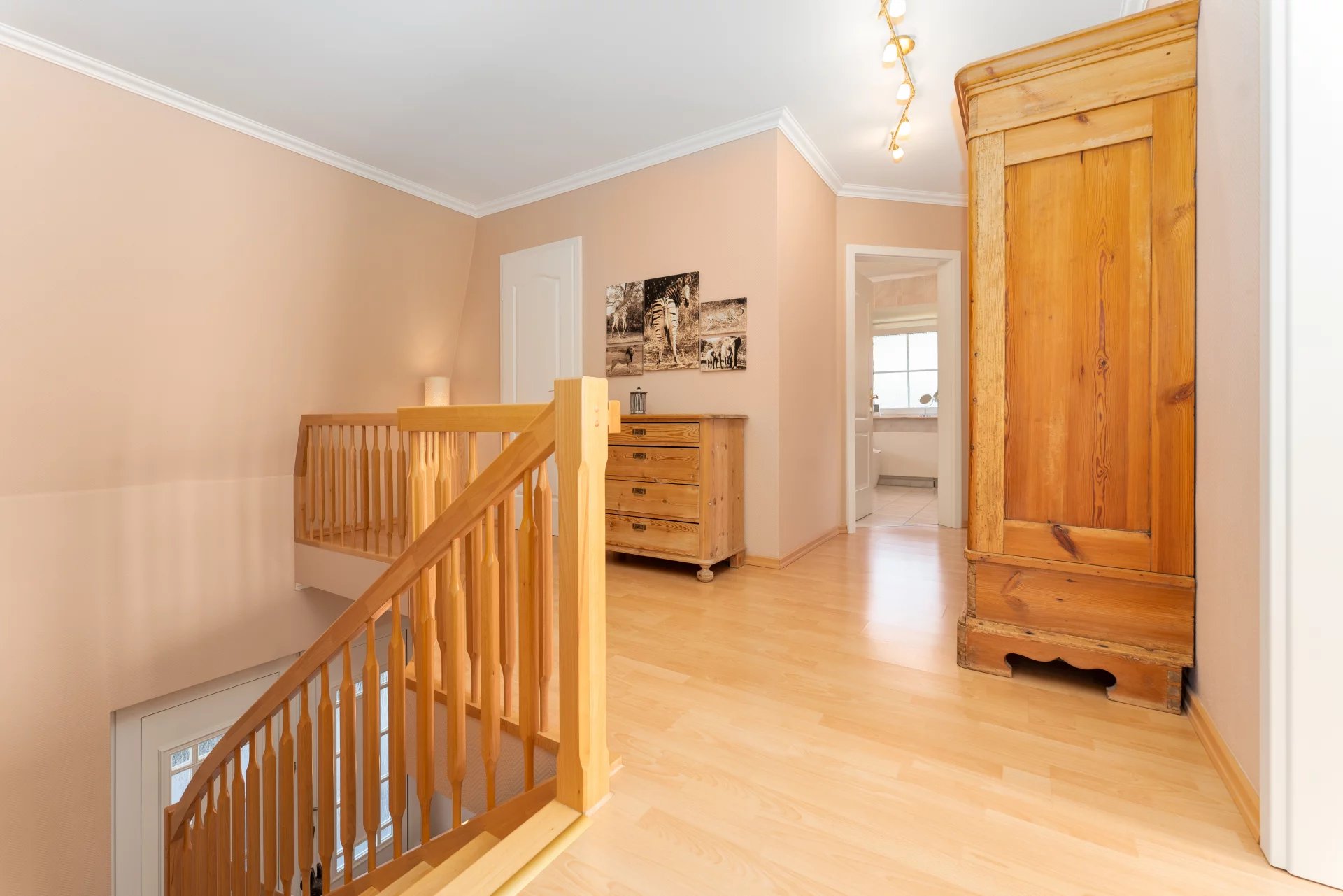 The first impression upon entering sets the tone: a bright, spacious entrance hall with an elegant wooden banister and warm colour tones welcomes visitors and offers a foretaste of the quality throughout the entire home.